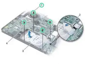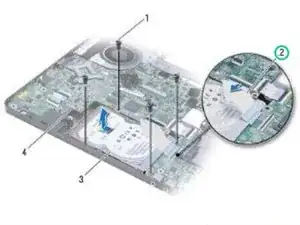 Верните четыре винта, закрепляющие узел жесткого диска в основании компьютера.