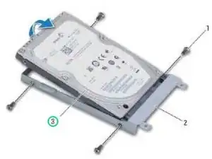 Снимите четыре винта, закрепляющие жесткий диск в кронштейне жесткого диска.