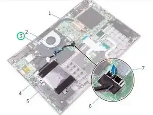 Отклейте ленту, фиксирующую кабель жесткого диска к области подставки для ладоней и клавиатуре.