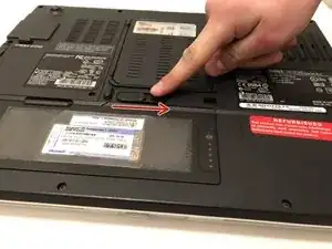 Удалите аккумулятор, нажав на маленький переключатель и вытащив аккумулятор из отведенного места.