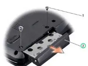 Удалите два винта, закрепляющих сборку жесткого диска к корпусу компьютера.