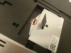 Удалите винт 2.5 мм, который фиксирует сборку жесткого диска к основе компьютера.