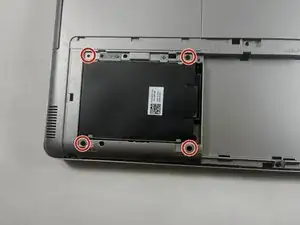 Удалите четыре винта 2,5 мм, фиксирующие отсек жесткого диска, с помощью отвертки Philips #1.