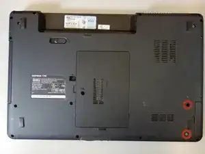 Переверните ноутбук так, чтобы нижняя сторона была видна.