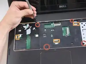 Используйте отвертку Phillips #0, чтобы открутить четыре винта длиной 5 мм в области площадки для рук.