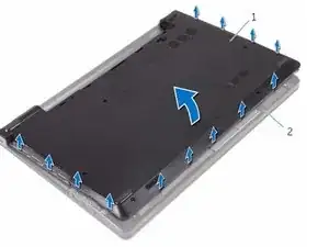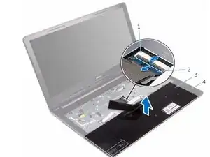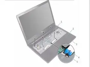 Откройте дисплей и удалите винты, которые фиксируют сборку подлокотника к крышке корпуса от ее разъема на системной плате