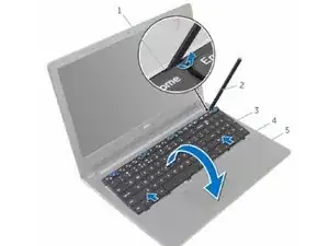 Используя пластиковую лопатку, аккуратно освободите защелки, которые фиксируют клавиатуру к сборке подлокотника