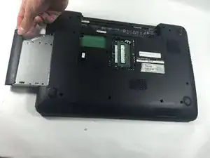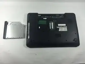 Вставьте маленькую отвёртку в отверстие и сдвиньте оптический привод от центра устройства. Это выдвинет оптический блок из боковой части устройства.