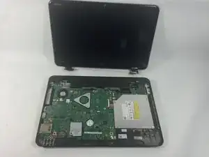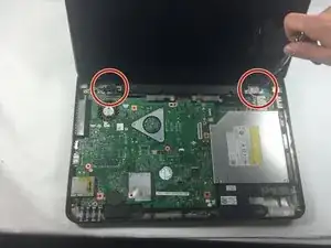 Отключите прямоугольный чёрный кабель ЖК-экрана, подключённый к системной плате в верхнем левом углу.