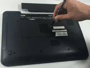 Переверните компьютер и удалите двенадцать винтов Филлипс №0, 5 мм на задней панели устройства.