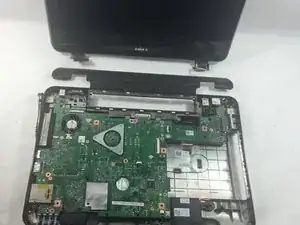 Переверните системную плату, чтобы открыть отсек вентилятора и жесткого диска.