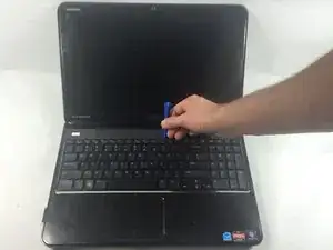 Вставьте пластиковый инструмент для вскрытия в прорези сверху клавиатуры.
