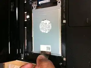 Потяните пластиковую вкладку, соединенную с жестким диском, влево, чтобы извлечь жесткий диск из корпуса. Уберите жесткий диск в сторону.
