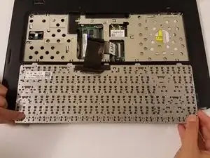 Перед дальнейшей разборкой устройства подготовьте отвертку и пластиковый инструмент для вскрытия. В этой части руководства потребуется снять клавиатуру, поэтому аккуратно тяните кабель клавиатуры, чтобы не повредить его.