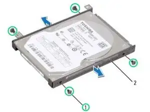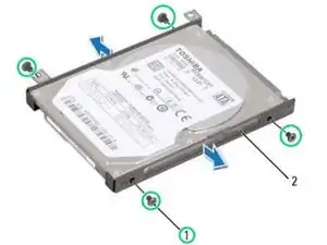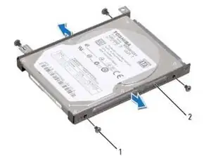 Удалите четыре винта, которые крепят жесткий диск к кронштейну жесткого диска.