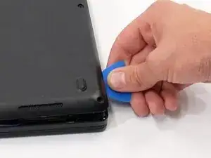 Вставьте конец инструмента для открытия iFixit или пластиковую лопатку в зазор между нижней и верхней частями корпуса, чтобы освободить защелки, удерживающие их вместе.