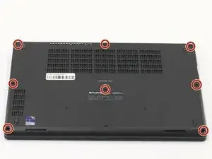 Используйте отвертку Phillips #00, чтобы ослабить восемь винтов, крепящих нижнюю крышку.