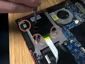 С помощью отвертки Phillips 1 открутите три винта M2x3 мм, расположенные над клавиатурой, где изначально была маленькая панель.