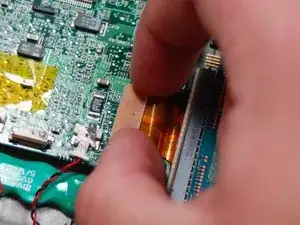 Поднимите маленький ZIF-разъем и извлеките ленту.