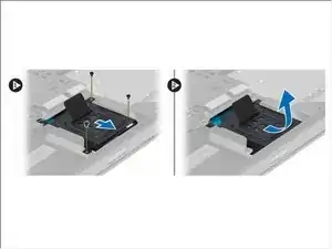 Удалите винт, который фиксирует вторичный жесткий диск к кронштейну.