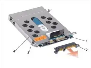 Уберите четыре винта (по два с каждой стороны), чтобы отсоединить каркас жесткого диска от жесткого диска.
