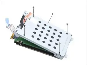 Снимите четыре винта, фиксирующих сборку жесткого диска к компьютеру.