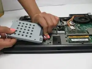 Поднимите корпус жесткого диска из ноутбука.