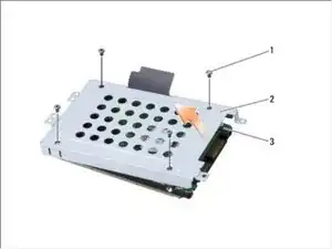 Удалите четыре винта M3 x 3 мм, фиксирующих каркас жесткого диска к жесткому диску.