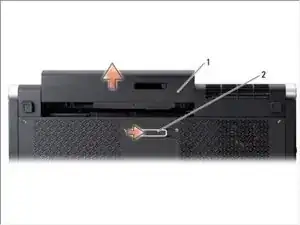 Переместите защелку освобождения батареи вбок.