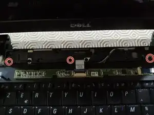 Чтобы отстегнуть часть корпуса под клавиатурой, удалите последние винты с задней стороны ноутбука.
