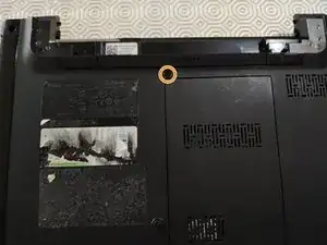 Чтобы отключить оптический привод, переверните ноутбук и удалите единственный винт, удерживающий его.