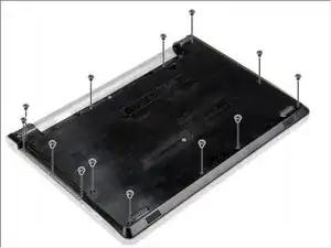 Удалите винты, которые крепят нижнюю крышку к компьютеру.