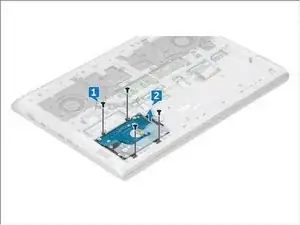 Удалите винты M2.5x5L, которые крепят жесткий диск к компьютеру [1].