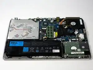Снимите заднюю крышку ноутбука, открутив восемь винтов 3.5 мм с помощью отвертки Phillips #0.