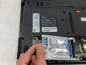 Потяните за пластиковый язычок и извлеките жесткий диск из ноутбука.