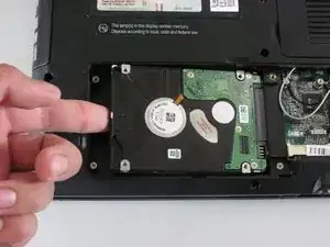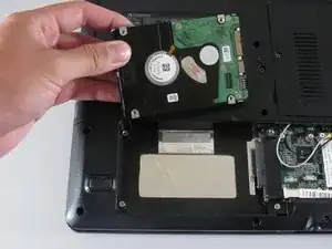 Сдвиньте оригинальный жёсткий диск влево и приподнимите, чтобы извлечь.