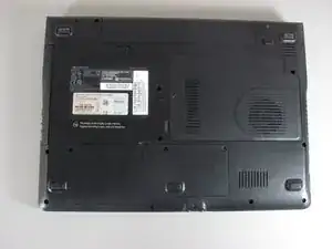 Переверните ноутбук так, чтобы нижняя сторона была направлена вверх.