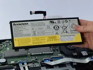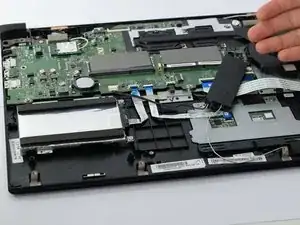 Отложите батарею в сторону. Это даст более удобный доступ к разъёму жесткого диска.