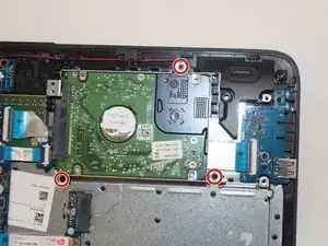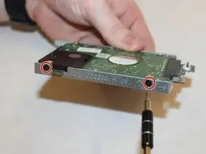 Снимите выделенные винты, крепящие жесткий диск к корпусу, используя отвертку Phillips №00.