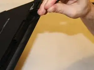 С помощью лопатки нажмите на защёлки сзади, удерживающие корпус вместе. Аккуратно подденьте корпус, продвигая лопатку вокруг корпуса.