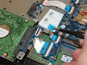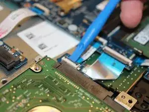 Подденьте зажим, удерживающий SATA-шлейф питания, пластиковым инструментом для вскрытия.