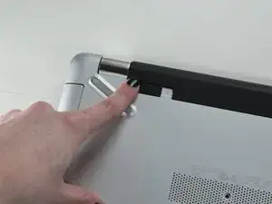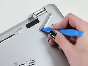 Используйте пластиковый инструмент для открытия, чтобы поддеть заднюю панель от корпуса ноутбука.