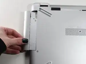 Снимите центральный винт с задней части ноутбука с помощью отвертки Phillips #000.