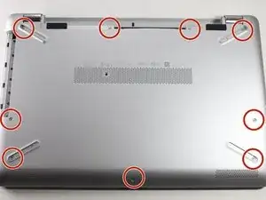 Удалите девять винтов с задней части ноутбука с помощью отвертки Phillips #000.
