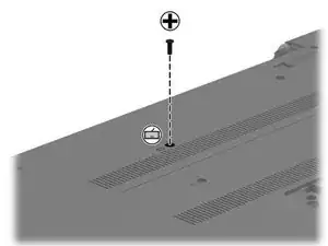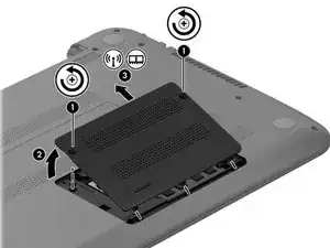 Ослабьте два винта, удерживающих служебную крышку ноутбука.
