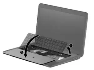 Нажмите лопатку внутрь, пока клавиатура не отсоединится. После этого переверните ноутбук в вертикальное положение.