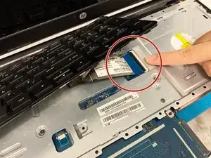 Поднимите крышку, закрывающую порт подключения, и удалите соединительную ленту, чтобы отсоединить клавиатуру от материнской платы.