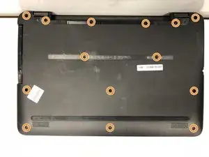 Удалите два куска черной ленты, которые покрывают каждый из винтов 7 мм в верхних углах ноутбука.