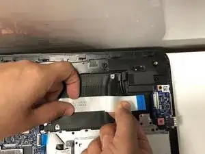 Отключите синие концы белого шлейфа, вытянув синие концы из разъема.