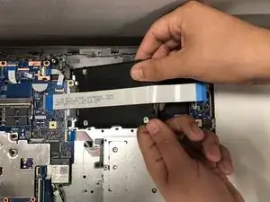 При удалении двух черных кусочков ленты сохраните их, чтобы наклеить обратно на ноутбук при сборке.